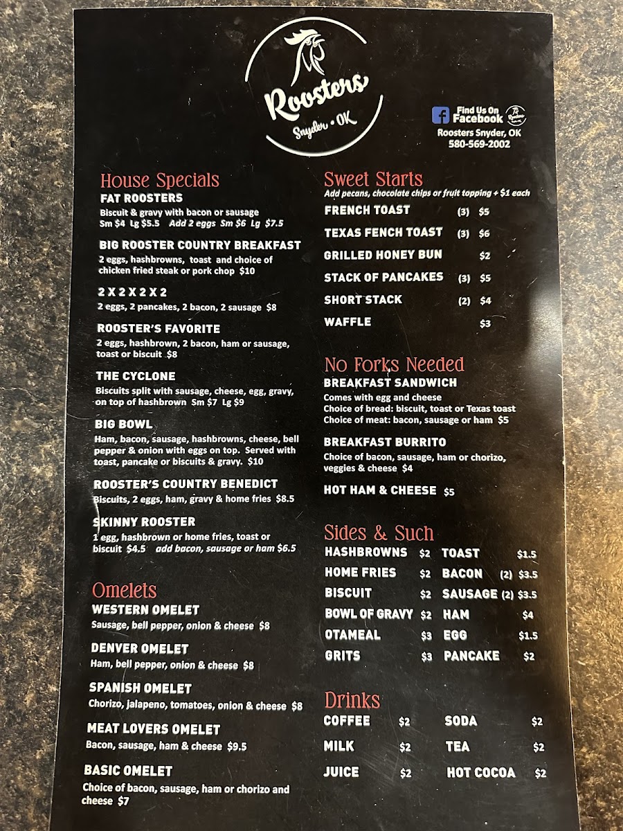 Welcome to Roosters, a charming diner located in Snyder, Oklahoma, renowned for its delicious breakfast offerings and inviting atmosphere. This beloved eatery serves up hearty portions that keep patrons coming back for more, as reflected in glowing reviews from satisfied customers.